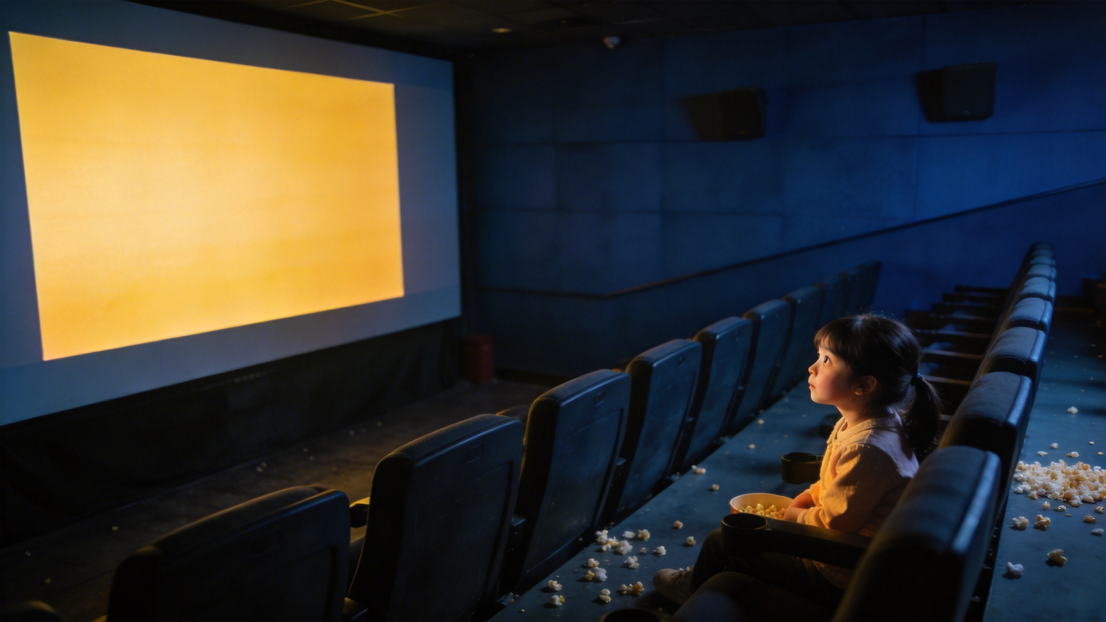 4. 看完电影,她还在那里 。