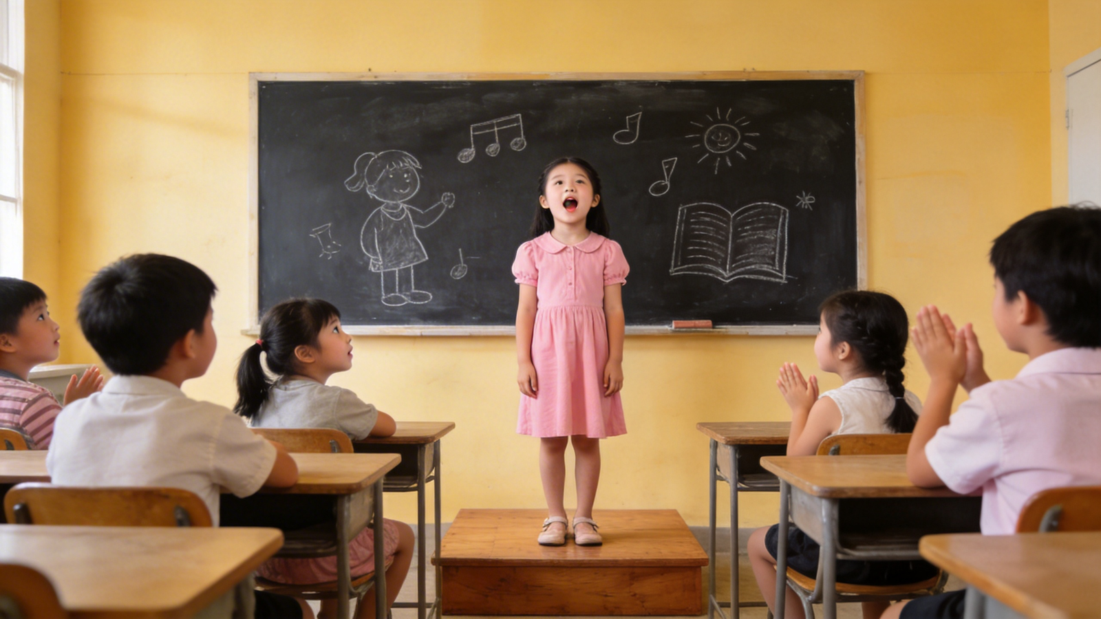 1. 上课前,她 给大家唱了个歌。