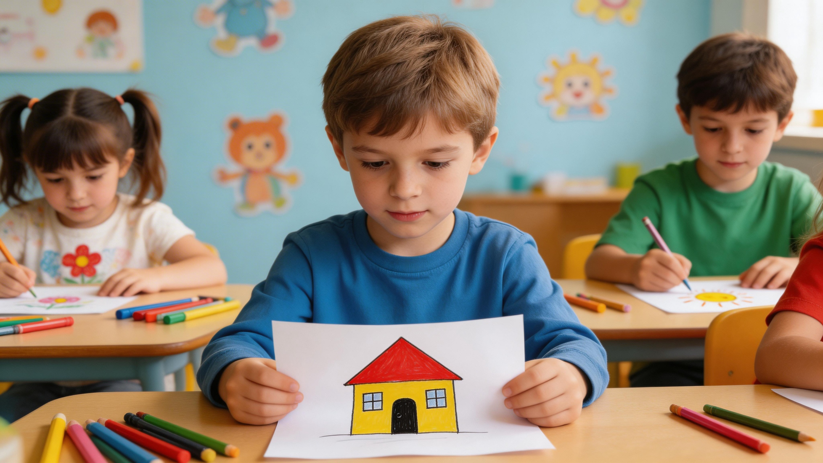 3. 他的本子上 一个房子。